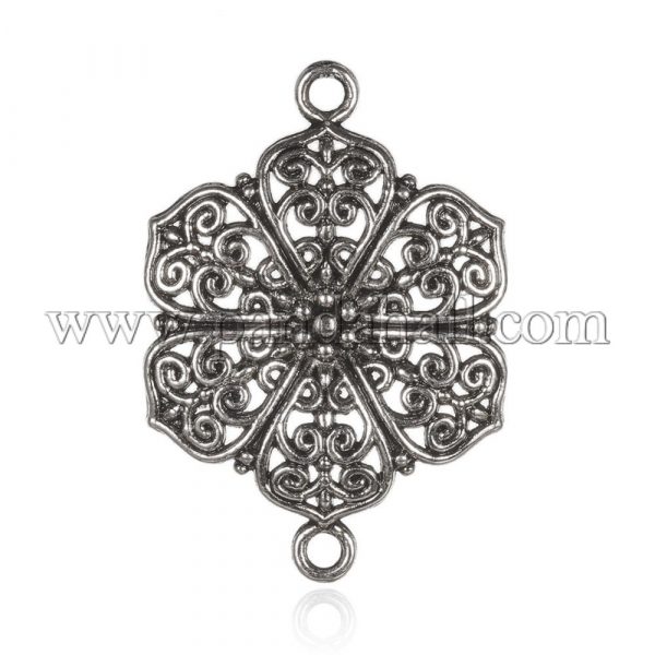Be the first to review “Tibetan Style Alloy Link, Flower, Antique Silver, 40.7×31.3x3mm, Hole: 2mm”