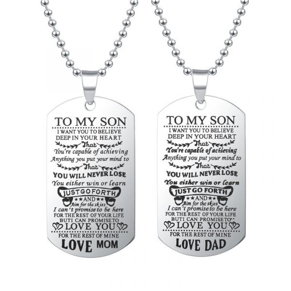 To My Son Daughter I Want You To Believe Love Dad Mom Lettering Hang Necklace