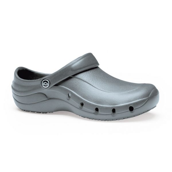 Adjustable heel strap which can be worn in forward or back positions.LightweightClosed-in heel Specially designed to hold the heel securelyGrip-Safe® Sole gives excellent slip resistance but also offers a much greater penetration resistance than other lightweight footwearShock absorbing anti-static heel device specifically incorporated to meet static sensitive situationsSide vents specially shaped to prevent fluid penetration.Upper: EVAUp to 40 degree wash