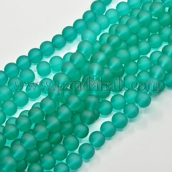Transparent Glass Bead Strands, Frosted, Round, LightSeaGreenSize: about 4mm in diameter, hole: 1.3~1.6mm; about 200pcs/strand, 31.4″.Glass beads are shining and fascinating. Its decent appearance is full of beauty of pure and simple. Glass beads alaways give people a feel of elegant and exquisite. It can be matched with hooks, jumprings, and pins to be necklaces, bracelets and so on.