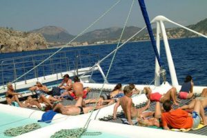 Pero el espectáculo no está solo en el mar. Desde los pisos superiores se puede disfrutar de unas vistas impresionantes de las escarpadas costas de los municipios de Calvià y Andratx. No te pierdas las hermosas playas, las recónditas calas y los abruptos acantilados y rocosos islotes que se elevan por encima de las olas. Verás mansiones de millonarios, yates de lujo y muchas cosas más. Apreciarás el espectacular y muchas veces inhóspito perfil de la costa mallorquina. Una experiencia realmente inolvidable que perdurará mucho tiempo en tu memoria.