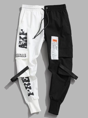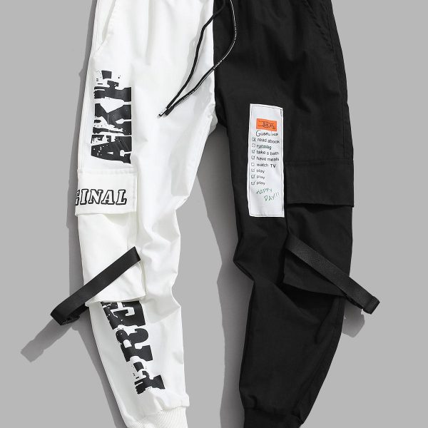 Be the first to review “Two Tone Letter Print Buckles Cargo Techwear Pants Xs Black”