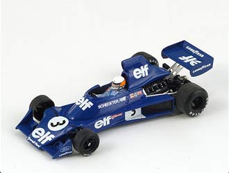 This Tyrrell 007 (Jody Scheckter – Belgian GP 1975) Resin Model Car is Blue and features comes in a display case. It is made by Spark and is 1:43 scale (approx. 9cm / 3.5in long).