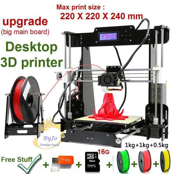 2017 The new upgrade 3D Printer Prusa i5, High precision, 16G TF Card +2kg Filament +0.5kg Filament, Card reader gift, DHL free shipping.