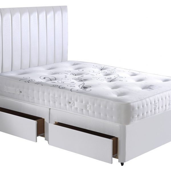If luxury is the target then the Utopia Vine Pocket Sprung Series 1000 Memory Divan Bed is the perfect fit for just that. The UK manufactured spring system has a deep memory foam layer which moulds around the body to give exceptional pressure relief where you need it most. The high loft mattress and the stunning super soft mattress fabric make this one of the most popular beds in the Utopia range. There are flag stitched turning handles on both sides of the mattress for easy care and brass vents which will guarantee that the mattress that the mattress stays fresh and healthy for many years to come. The matching divan base also comes with end or side storage in any combination.