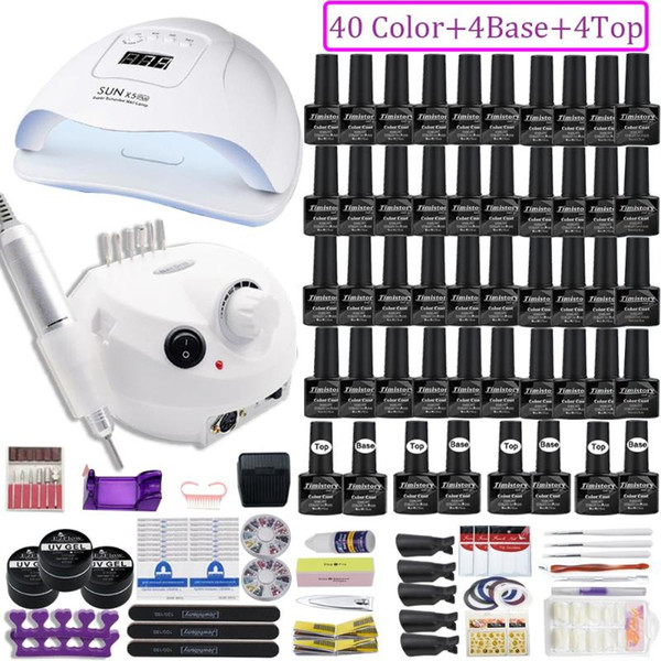 UV LED Lamp Nail Set Acrylic Kit 40&20 Colors Nail Gel Polish Manicure Set With 35000/20000 RPM Drill Machine Art Tool