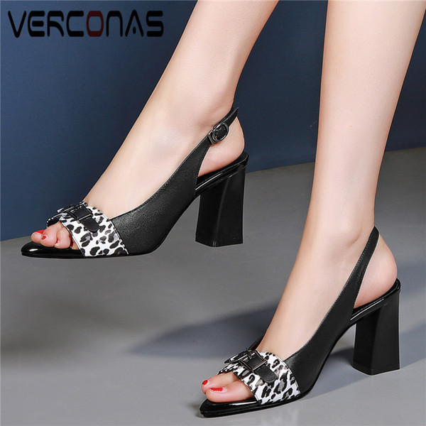 VERCONAS Women Thick Heel Genuine Leather 2020 Design Comfortable Lace Up Sandals High Heels Summer Concise Shoes Woman