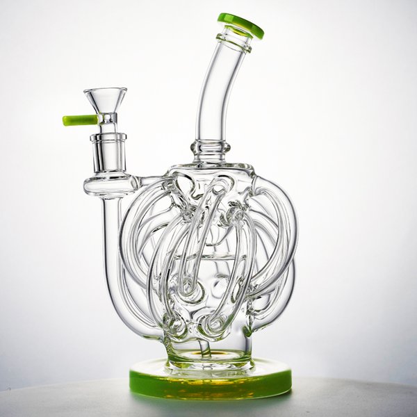 Vortex 12 Recycler Tube Hookahs 14mm Female Joint Glass Bongs 4mm Thick Super Cyclone Water Pipe Bent Neck Oil Dab Rigs