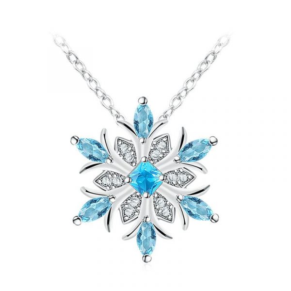 Water Blue Snowflake Diamond Pendant Necklace