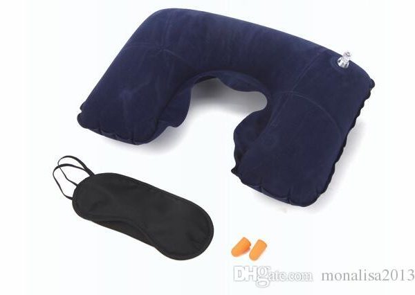 Wholesale factory price 3in1 Travel Office Set Inflatable U Shaped Neck Pillow Air Cushion + Sleeping Eye Mask Eyeshade + Earplugs