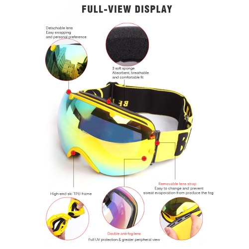 Winter Ski Goggles UV400 Protection Dual Lens Snowboard Goggles Spherical Snow Skating Skiing Sports Goggle Detachable Lens Goggles