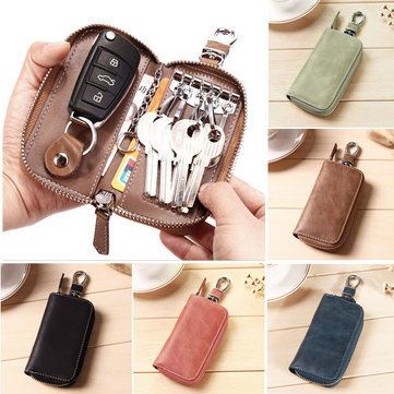 Women Men Leather Zipper Portable Car Key Storage Bags Keys Pouch Card Wallet