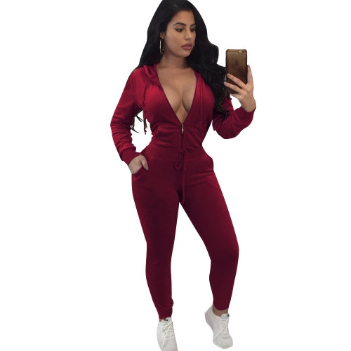 features a hooded top with zip closure to front, full sleeves and a tracksuit pant with adjustable drawstring to the waist. Its a great suit for fitness and casual occasions.