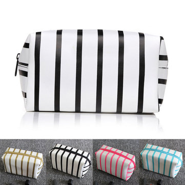 Women Waterproof Stripe Makeup Bag Toiletry Case Cosmetic Pouch Travel Purse