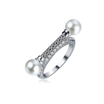 Women’s Elegant Ring Zircon Pearl Platinum Ring
