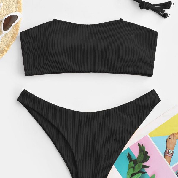 Be the first to review “ZAFUL Ribbed Bandeau Bikini Swimwear M Black”